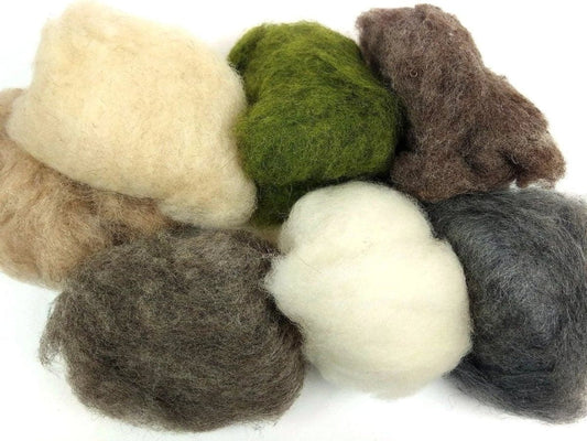 Natural Pebbles Mix - Natural Brown, Grey, Cream and Dyed Green Batts 120g
