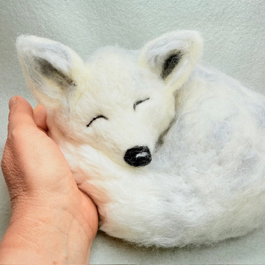 SHe didn’t want to hold the ball and I chose to felt in her eyes and shaped a little bit of a nose. I’m really happy with her.