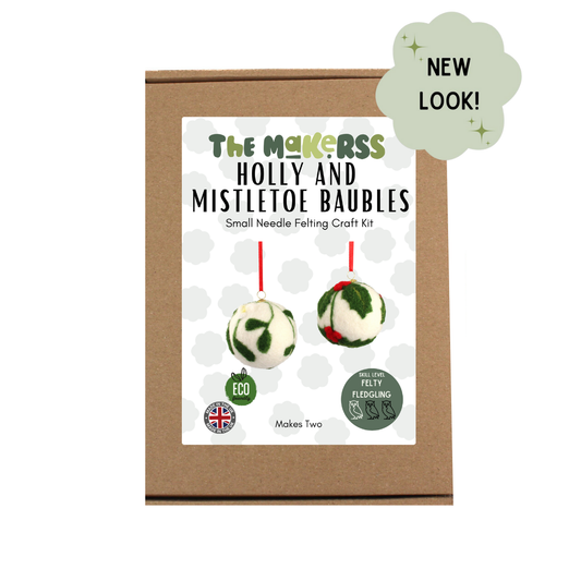 Holly and Mistletoe Bauble Small Needle Felt Kit - makes 2