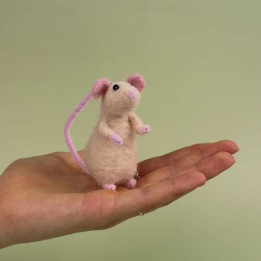 Cream Mouse Small Needle Felt Kit - ready for character accessories